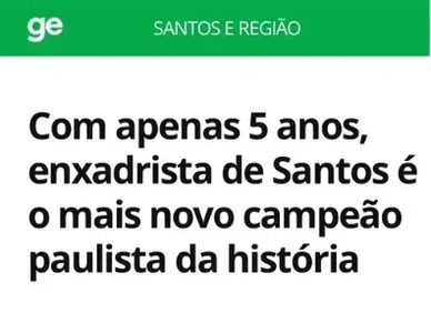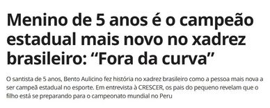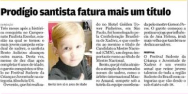 O santista Bento Aulicino, de apenas 5 anos, é o mais novo campeão paulista de xadrez da história. (LEIA MAIS)