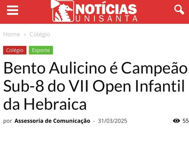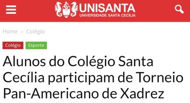 No último domingo (30), os enxadristas Bento e Ana Helena Aulicino, alunos do Colégio Santa Cecília, participaram no VII Open Infantil da Hebraica, no Clube A Hebraica, em São Paulo. (LEIA MAIS)