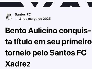 Bento Aulicino conquistou seu primeiro título pelo Alvinegro, confirmando seu nome como um dos maiores destaques do xadrez infantil no Brasil. . (Leia mais)