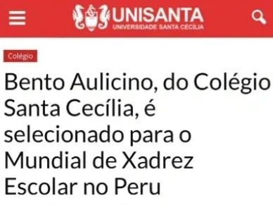 A jornada do garoto Bento Aulicino, aluno do Colégio Santa Cecília, no xadrez começou em maio de 2022, aos 3 anos, inspirado pela irmã Ana Helena Aulicino, campeã em seu primeiro torneio. Desde então, sua paixão pelo jogo só cresceu, levando-o a uma série de conquistas impressionantes. (LEIA MAIS)
